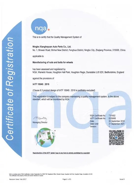 Våra hjulmuttrar möter 72-timmars saltspraytestning, liksom branschledande styrka och hårdhet. Samtidigt kommer våra råvaror genom strikta tester för att säkerställa kvaliteten på produkterna.